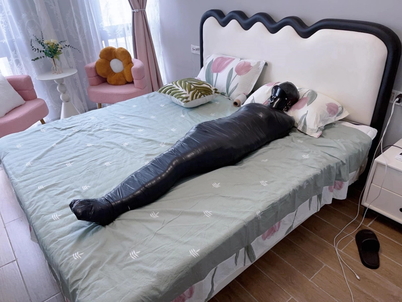 最后妹子和我说想出来,开玩笑,之前说不想解开现在想出来?没那么容易!直接给了一个安全剪刀,自己能出来就出来,无法自己脱缚就再放置三小时再放她出来~