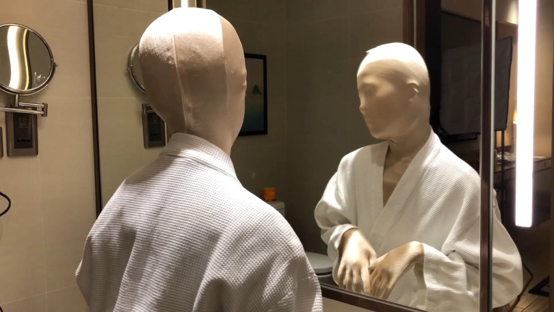 5.在极限全包的过程中增加了呼吸控制的环节,变成一只真空的全包娃娃,娃娃会痛苦的挣扎不止。