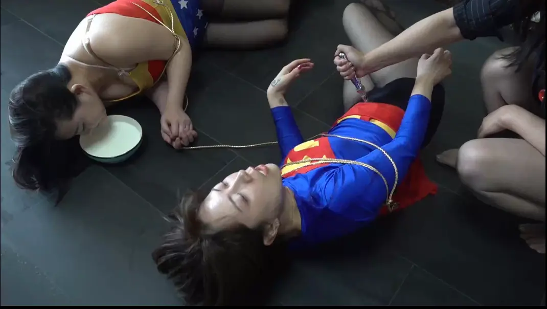 神奇女侠与女超人已经双双成为邪恶女反派的X奴隶,两人已经忍受不住开始抚摸自己,试图进入[X_X]。女超人用自己残存的理智拉着神奇女侠试图逃脱魔窟,但是又双双遇到邪恶女反派.......