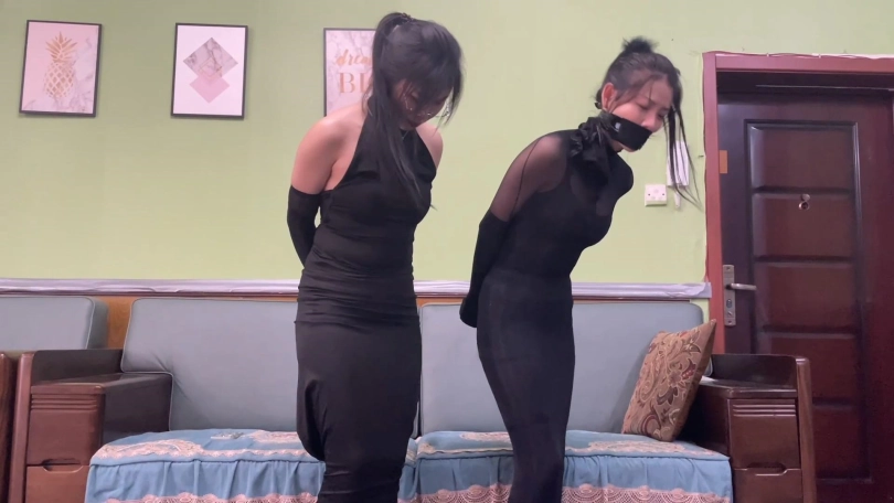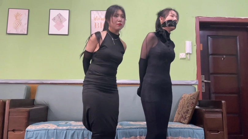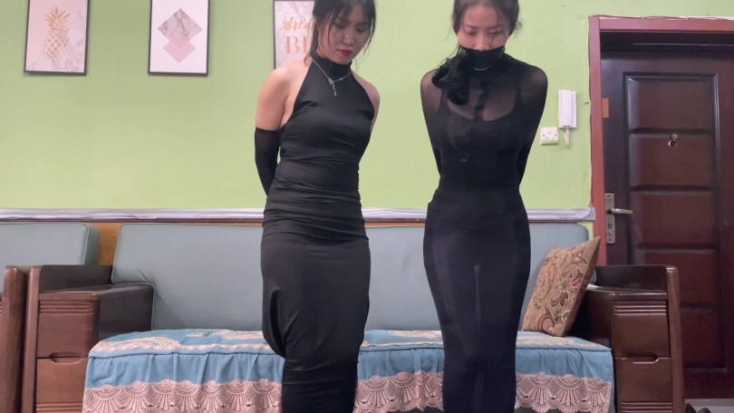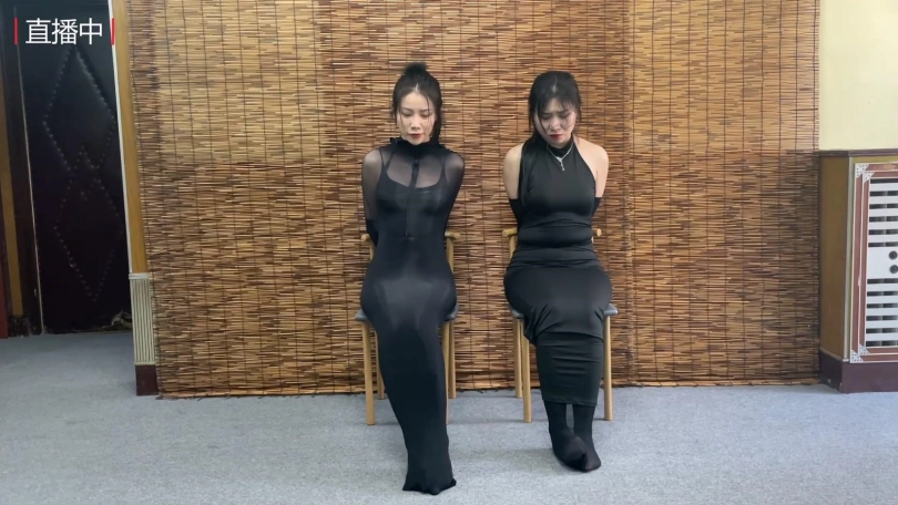 【逍遥】《紧缚晚礼服 止步拘束裙 下》完美还原漫画拘束 双人美女模特拘束晚礼服 被迫直播介绍身上的服装 吴晗和刘洋强强联手