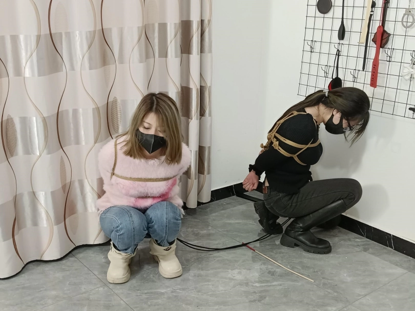 双女股绳进行拔河比赛,两人都在奋力向前,股绳被深深的勒紧峡谷里,最终珺珺坚持不住败下阵来。
