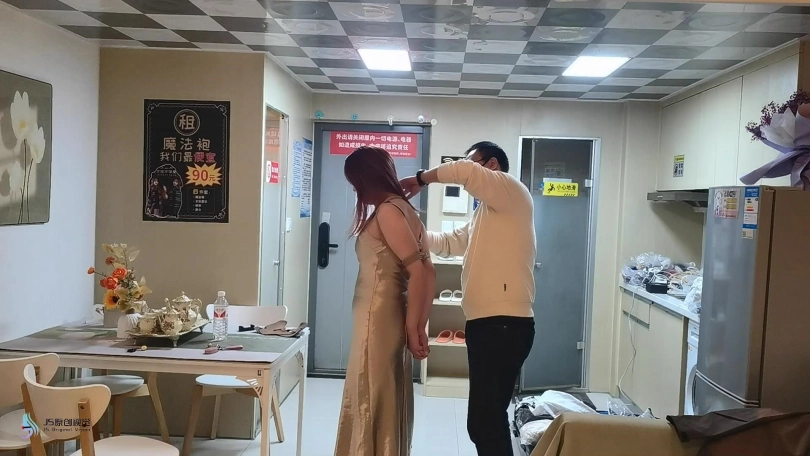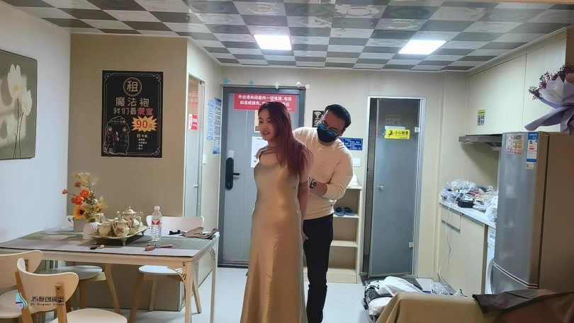 【JS】【露楠】肉丝金色吊带裙直臂膀驷马捆绑胶带封嘴棒棒刺激