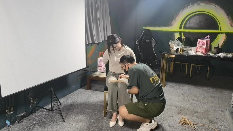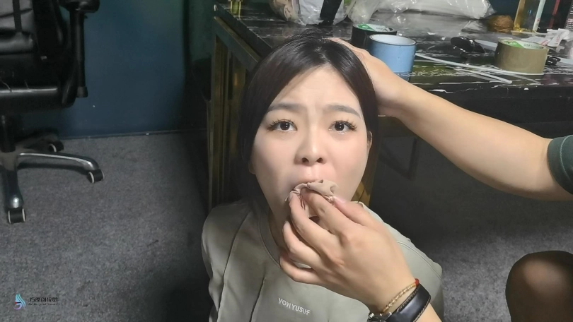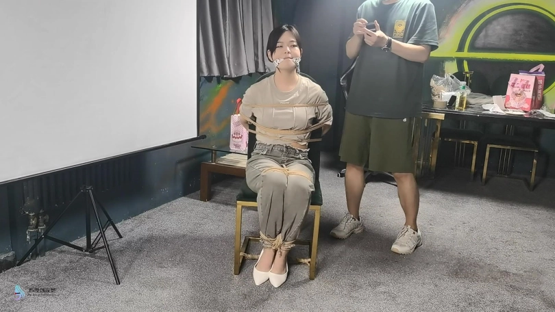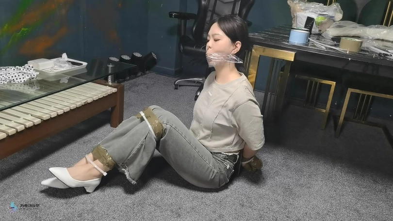 【JS】【梦琪】《少女遇险》椅子缚丝袜堵嘴胶带扎带
