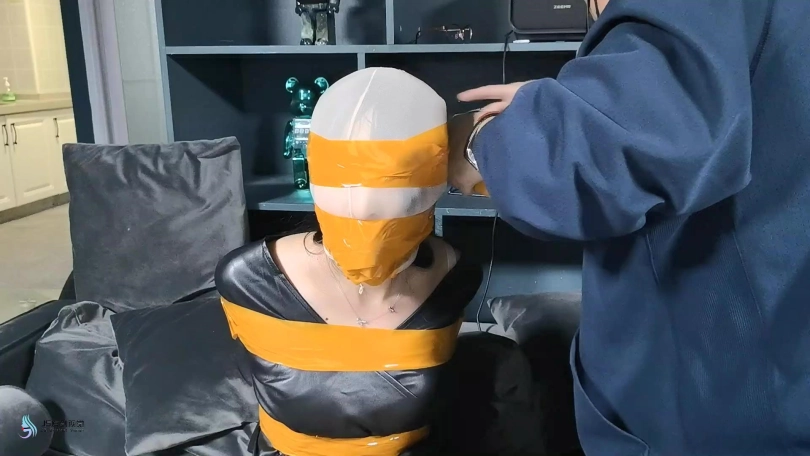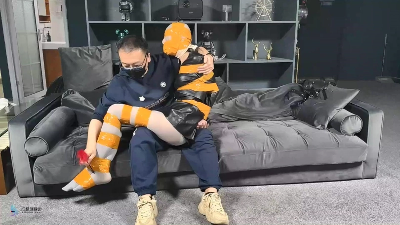 【JS】【欣妍】灰色胶带捆绑丝袜堵嘴套头蒙眼TK放置
