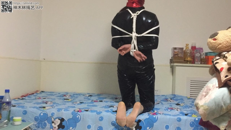 【JS】妖妖黑色胶衣,棉绳捆绑,丝袜塞嘴,胶带木乃伊(上)