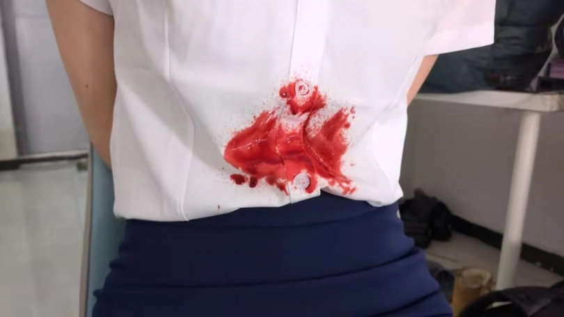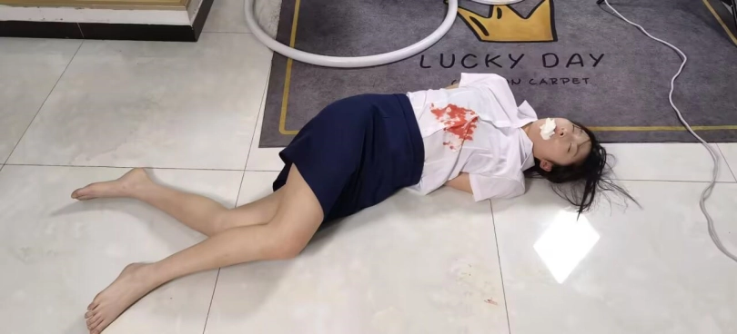 将尸体翻过来后可看到,腹部衣服有血迹所以无法确认受害者最终是[X_X]而亡还是死后腹部