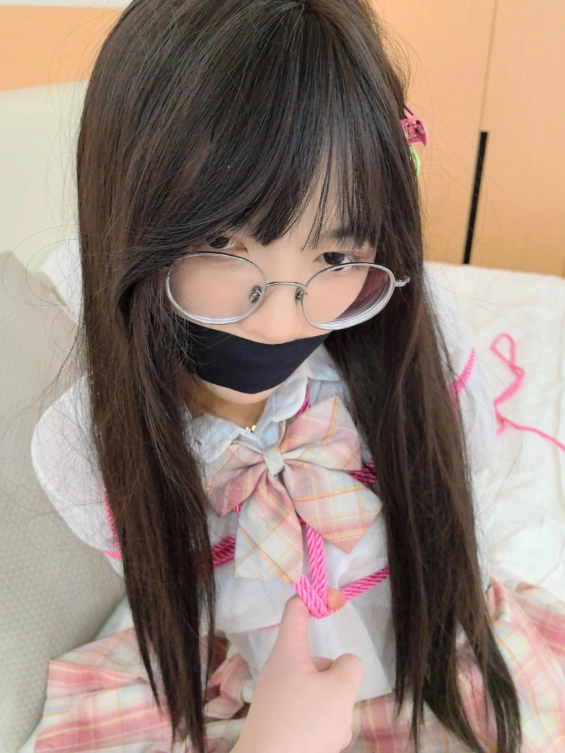 【逍遥】 线下约玩!超可爱伪娘猫又!粉绳捆绑胶带封嘴!