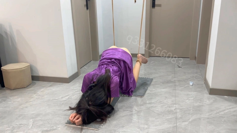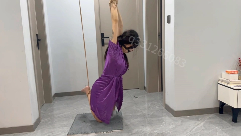 刚洗完澡准备去睡觉的m,从洗手间走出来,被发现穿了一件紫色的性感连衣裙睡衣,,这样给力的战袍怎么逃得过主人的欲望之火,二话不说,先捆了再说,,,一顿无情的把玩过后,开始尖叫求饶,过程特别劲爆,最后只能以微弱的呜呜声发出求求你,放过我,让我睡觉吧!的声音,结果等来最终只能被捆绑吊缚在卧室门口过夜的下场!!