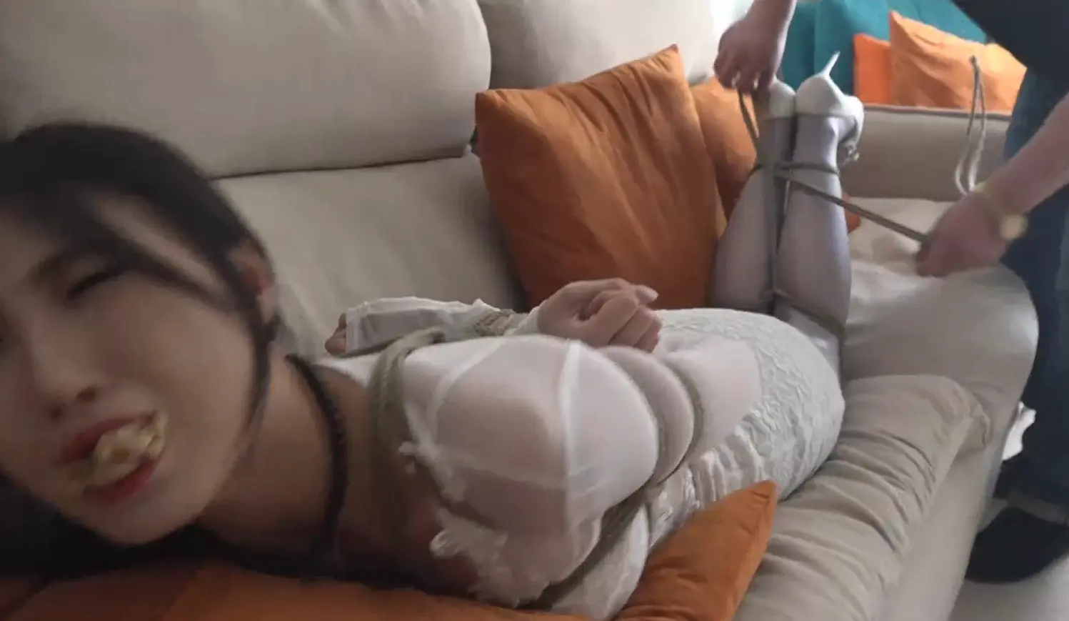 看点:美腿、灰丝、高跟鞋、堵嘴、调教、跪缚