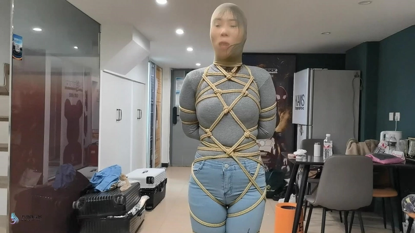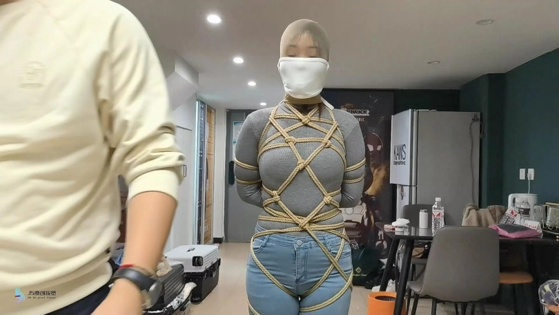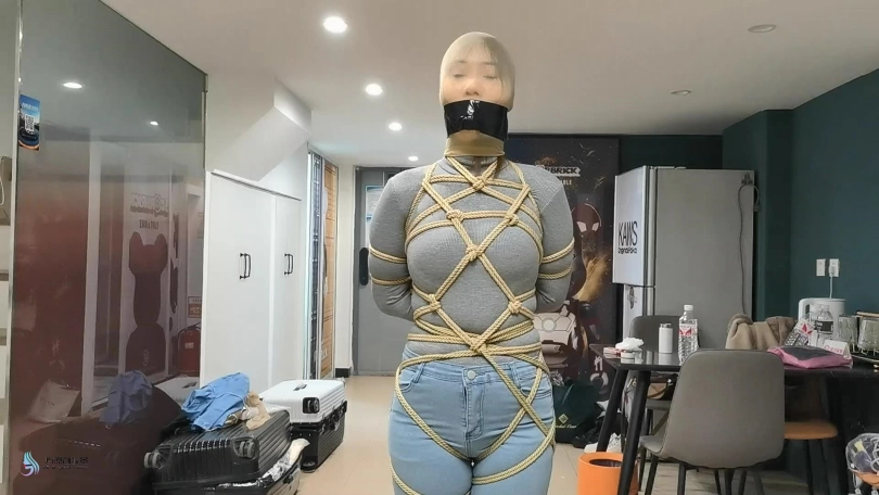 【JS】【凌熙】全身紧缚密集捆绑女牛仔丝袜堵嘴套头胶带封堵口罩棒棒刺激GC抚摸