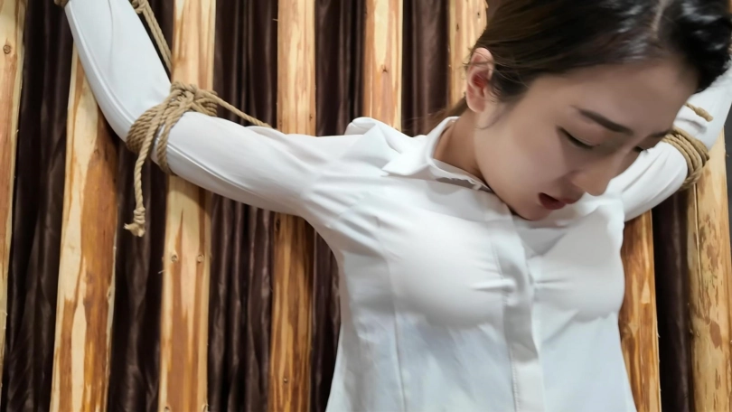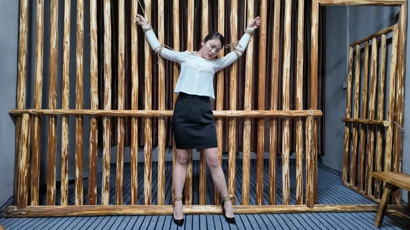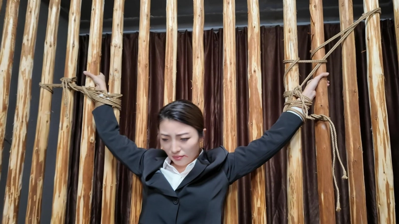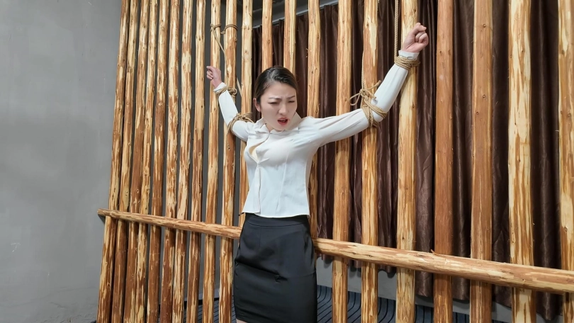 佳佳职业装被绑到牢房里面鞭打,衬衣扣子都打开了...最后直接晕过去了...