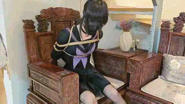 这次把小M绑好固定在椅子上放置了一会,后面又把她牵引到阳台处跪好再调整成鸭子坐就绑上固定,阳台下方就是小区广场挺吵闹的,可小M眼睛看不到,只能听得见 但感觉周围都是人 很抗拒的样子,弱弱的不敢发出声音。我静静的看着她挣扎,拉开领布露出洁白的胸口,裙扣被解开,裙摆凌乱撩开,露出黑色的内裤,掰开大腿一根杆子缓缓靠近...