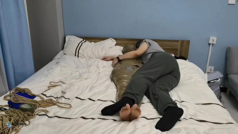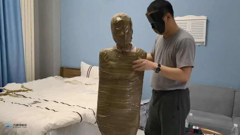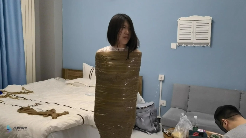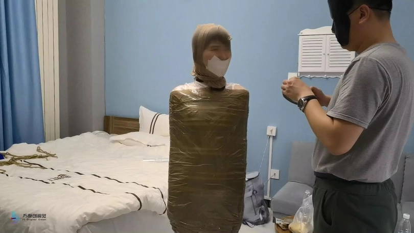 【JS】【芷若】胶带木乃伊捆绑丝袜堵嘴套头胶带封堵TD刺激