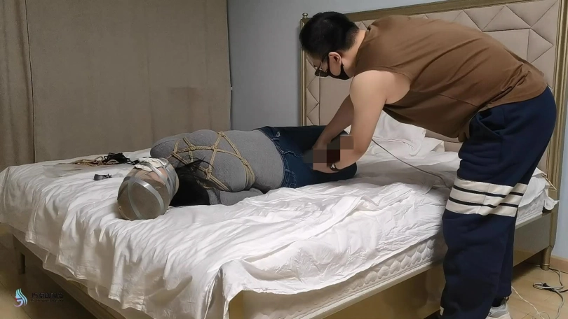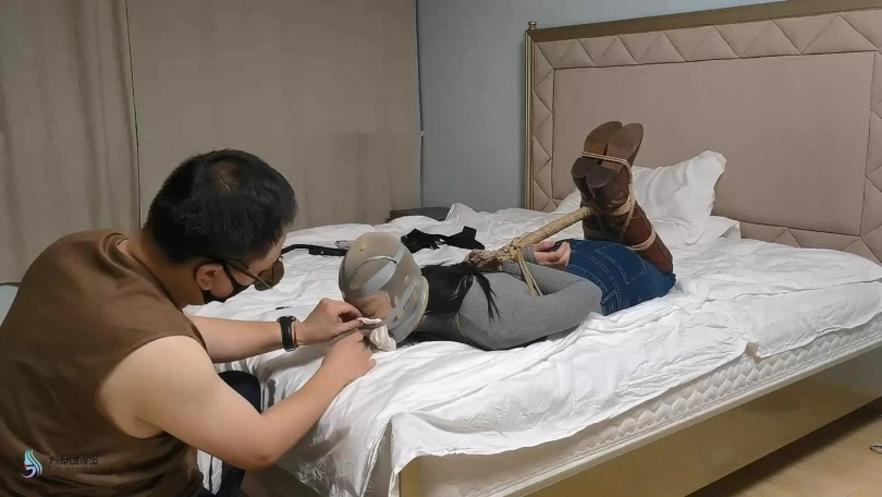 【JS】【哈妮】牛仔靴驷马捆绑丝袜堵嘴套头原味封鼻棒棒刺激