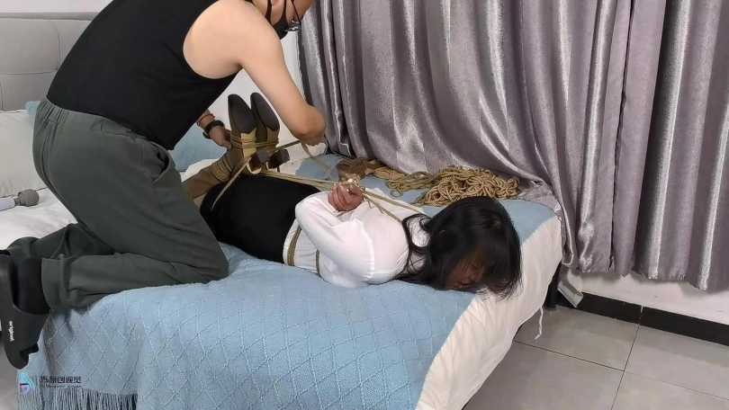 【JS】【李然】长靴驷马捆绑毛巾塞嘴胶布封堵TD震动胸棒棒刺激