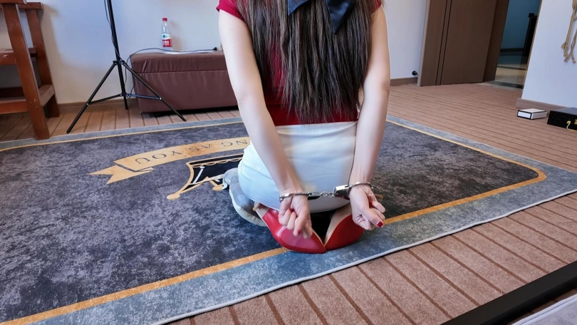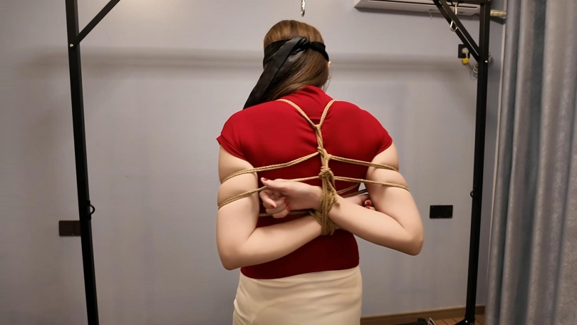 佳佳红衣吊带,带背拷等待客户调叫,客户走进房间,先单腿吊,带上口球放置,放下来之后进行溜狗,鞭打,最后采访佳佳,说半吊起腿会感到委屈,羞耻,带上口球,羞耻感会更重,流口水羞耻感更会再次加重,被主人下达命令的时候也会有一定的羞耻感