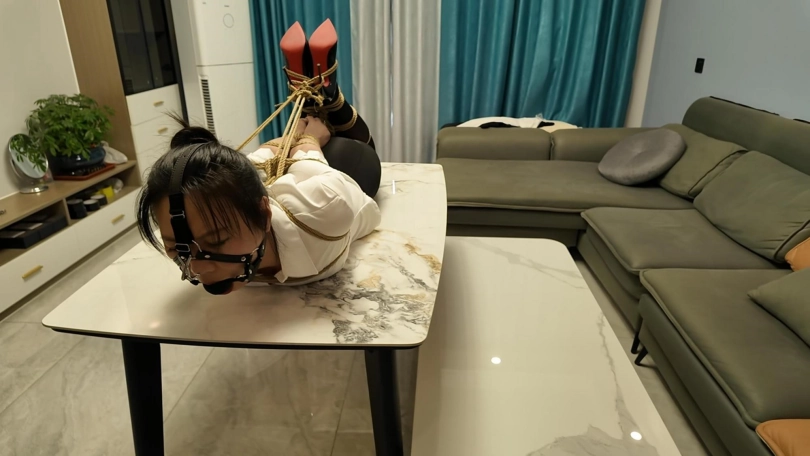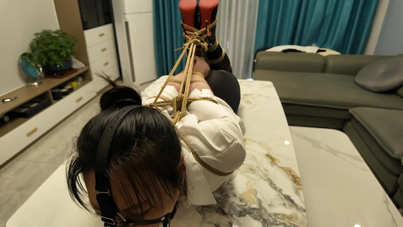 给紫涵欧式驷马放置到桌子上,要求就是一定要紧,马具口塞把头拉起来,最后解开疼的紫涵哼哼半天