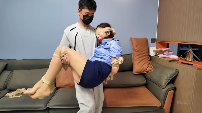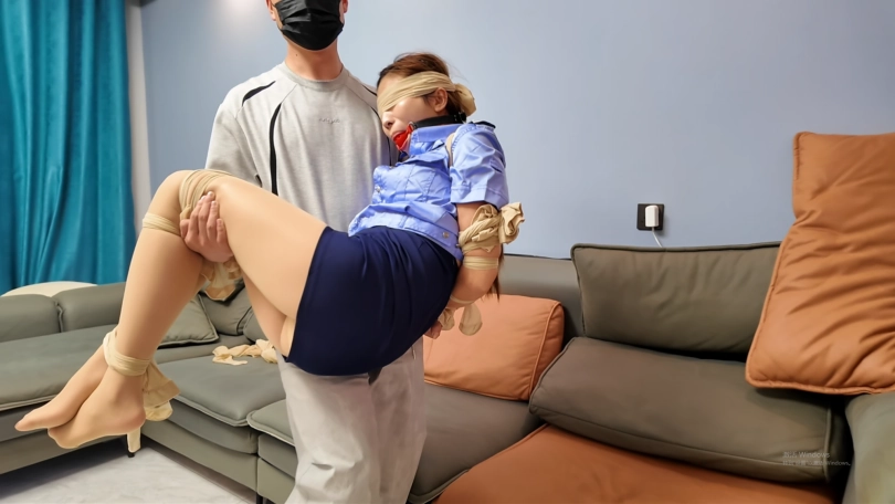佳佳和小建是同班12年的同学,小建一直喜欢着佳佳,但多次表白总被据,多年的求而不得让小建逐渐偏执,将佳佳得到手的想法成了他的执念。于是在某一天他开车来到佳佳家,拿着工具撬门入室,进屋后把门还原,然后在屋里转了一圈,在水壶里放了安眠药后躲在隐蔽处。佳佳穿着女j衬衣包臀裙高跟鞋下班回到家,经过一整天的奔波,已经精疲力竭,没有察觉到不对劲。佳佳先从壶里倒水喝,喝完后坐在沙发上把自己的腿放上来,然后来回抚摸揉捏大腿、小腿、脚来缓解疲劳顺带吐槽工作中发生的麻烦事,过了一会儿佳佳因为药效上来了越来越困,最后倒在沙发上失去知觉。小建过来先是抓着佳佳手臂晃了晃,接着摸了摸佳佳的腿,看到佳佳没有反应后,便笑着将佳佳公主抱抱在怀里说道:终于把你逮到了,现在你属于我了。说完便来回打量自己怀里的佳佳,抱了一会后把佳佳放回到沙发上,拿来一堆丝袜,开始对佳佳进行捆绑。完成捆绑堵嘴后小建在旁边架了个手机来录像和拍照,又过来开始来回抚摸佳佳的身体、腿、脚。佳佳慢慢开始清醒,小建暂时停手,佳佳迷迷糊糊地发现眼看不见,口不能言,身不能动,便开始扭动挣扎和发出呜呜声,挣扎了好一会依然没挣脱捆绑。小建开始继续来回抚摸佳佳身体、腿、脚,佳佳挣扎得更激烈,呜呜声也更急促,摸了一会后小建将佳佳公主抱抱起,看着佳佳在自己怀里挣扎。抱了一会后小建抱着佳佳坐到沙发上,然后将佳佳放到自己腿上坐着,然后继续来回抚摸佳佳身体、腿、脚……