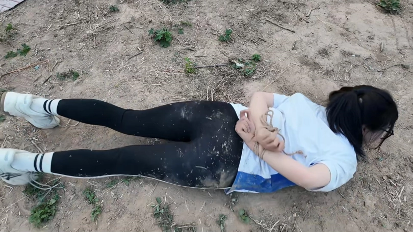 再次惩罚小遥,先把她固定到架子上Tk,,直到失紧,放置最后自己逃跑,被抓住,咋户外场地鞭打,脚踹,最后又绑到树上强告