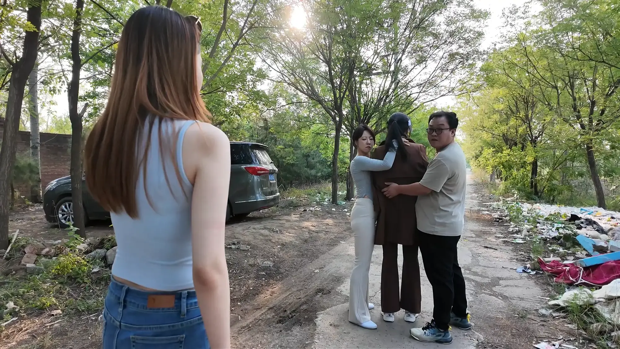 雨诺徒步郊游,因天气太热后悔自己没有开车出门,正当她发愁之际,一辆车停到了她的身旁,车窗摇下是一位气质出众的女人(米粒扮演),她询问雨诺为什么一个人在外面,交谈几句后米粒骗雨诺自己也是外出郊游的,并主动提出载雨诺一段路程,天真的雨诺就这样上了“贼船”。上车后雨诺看到前座的男人,米粒急忙解释这是他老公,雨诺表示自己手机没信号,多亏遇到两位才不至于困在野外,听到这个信息的夫妻两人都露出了邪恶的笑容,然而雨诺却没有察觉到丝毫危险。