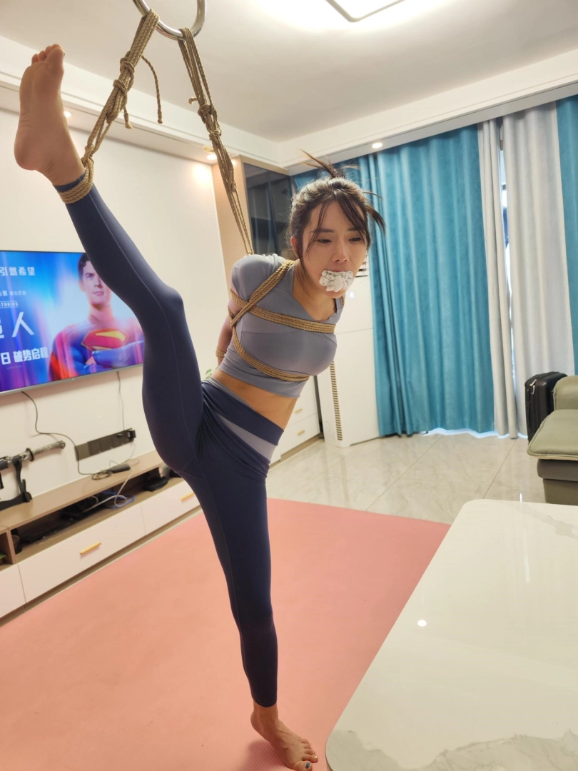 瑜伽美女十一在家练瑜伽,累了躺沙发上休息,被入室歹徒捂晕,后手直臂一字马吊起,接着放下后手观音海老缚收集口水,最后后手观音驷马,最终瑜伽美女十一答应做女N,后续会对这个瑜伽小美女十一进行一系列的调