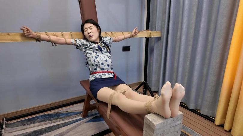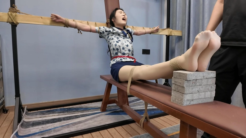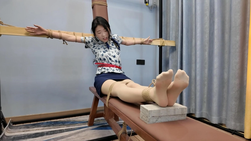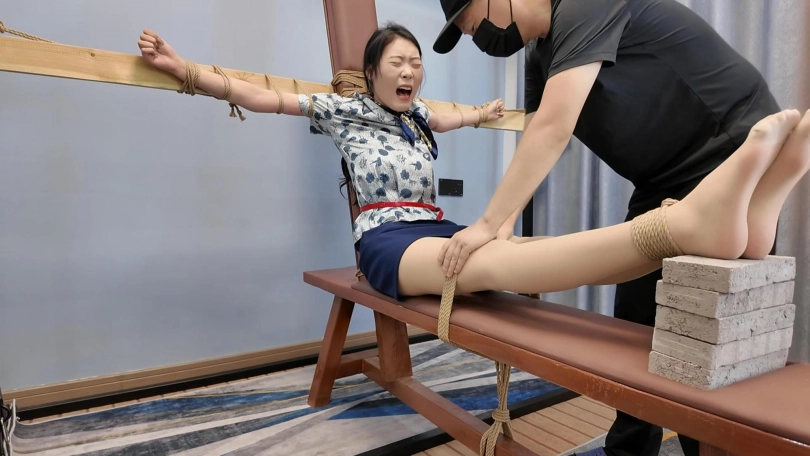 小夏老虎凳,要求七块砖,尽量虐哭......空姐小夏能否坚持到七块砖...