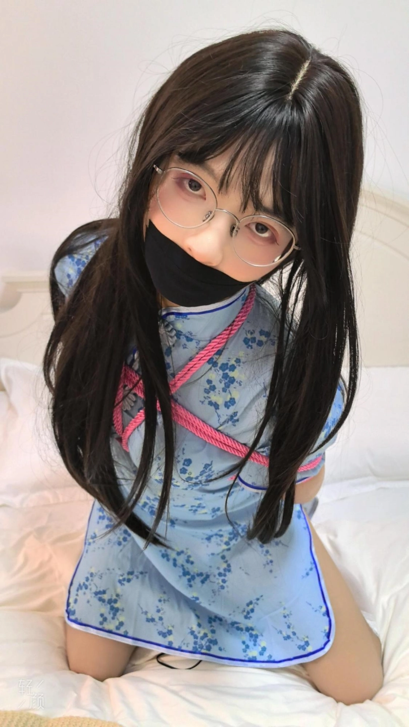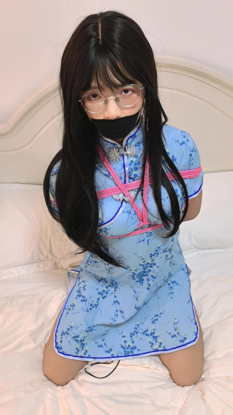 【逍遥】超好看可爱傲娇性感伪娘猫又!蓝旗袍长筒白丝粉绳捆绑床上挣扎!