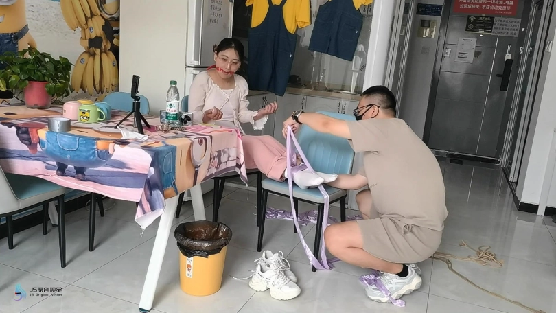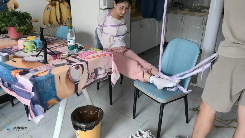 【JS】【流星客】眼镜妹子的直臂捆绑体验丝绸棉袜口球堵嘴