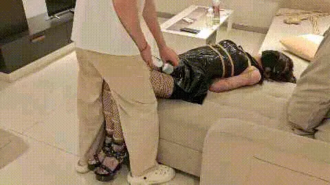 把小M绑好蒙住眼睛丢在沙发上,网丝并腿,再用小棒子挑逗,感受到刺激只能无助挣扎,短暂刺激就是不给释放,只能嗯嗯嗯生闷气,紧接着被驷马捆绑放置。