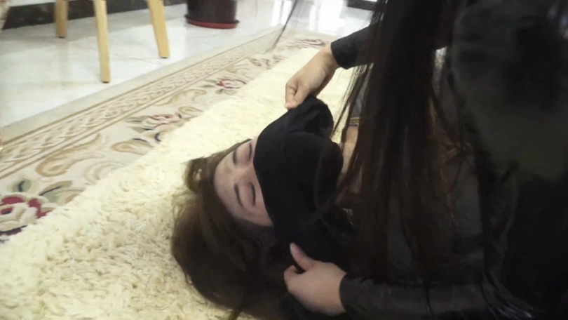 【逍遥】入室抢劫01 蒙面女入室抢劫黑丝长腿妹 迷晕、连裤袜堵嘴、蒙眼、丝袜套头