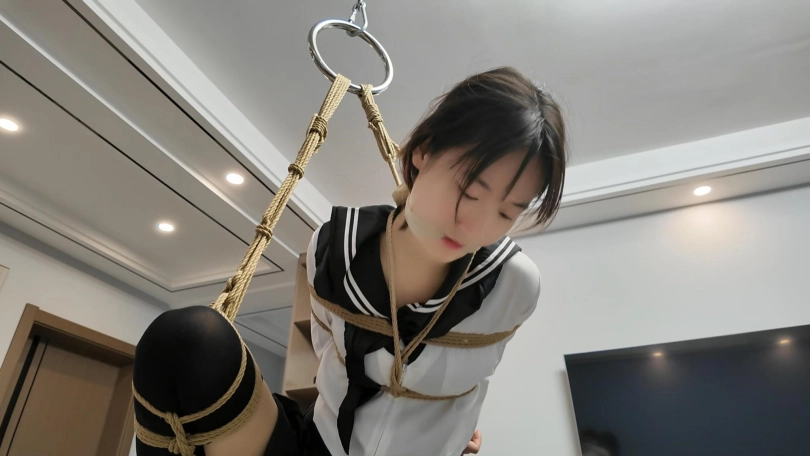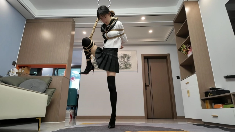 晓倩在家穿上肉丝。外面套上长筒黑丝,不料被早就潜入家里的歹徒捂晕,被驷马捆绑,丝袜堵嘴,丝袜蒙眼...