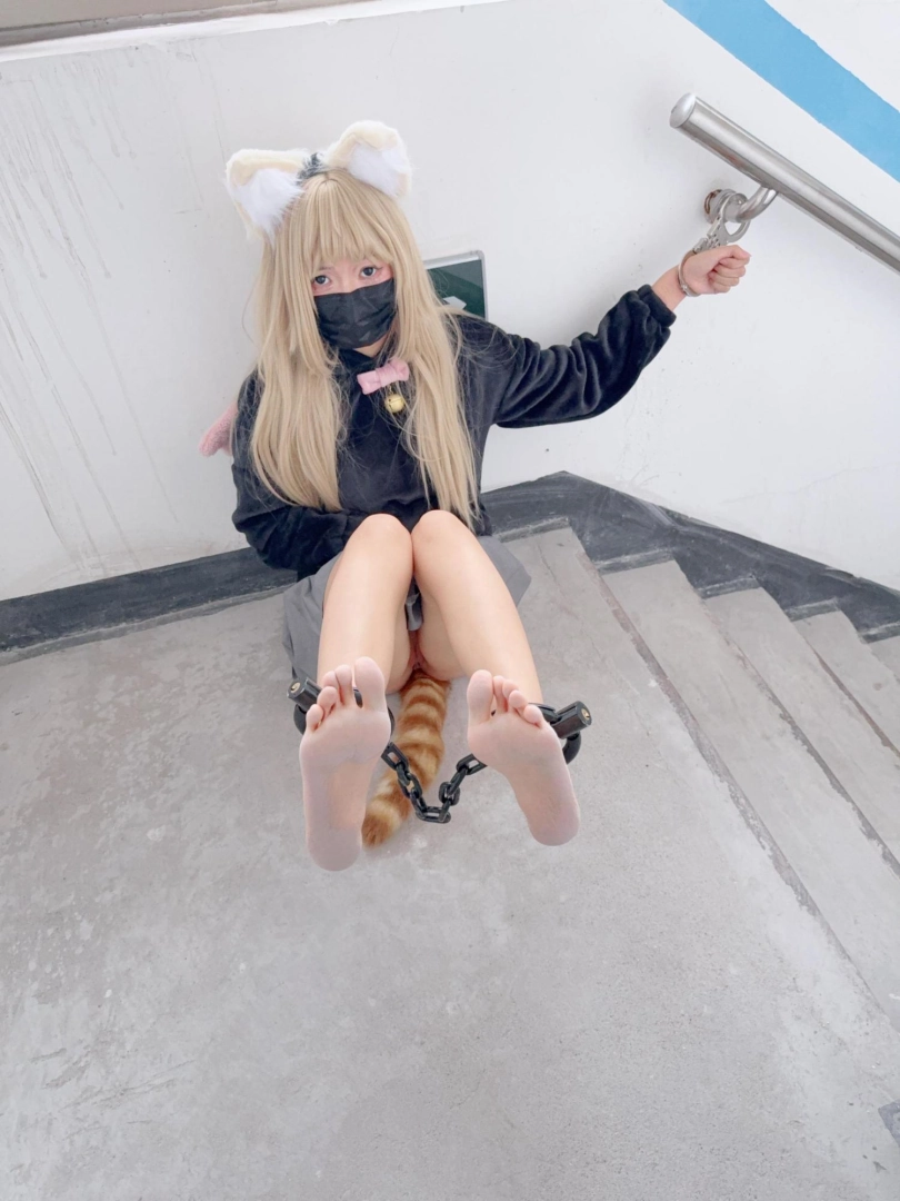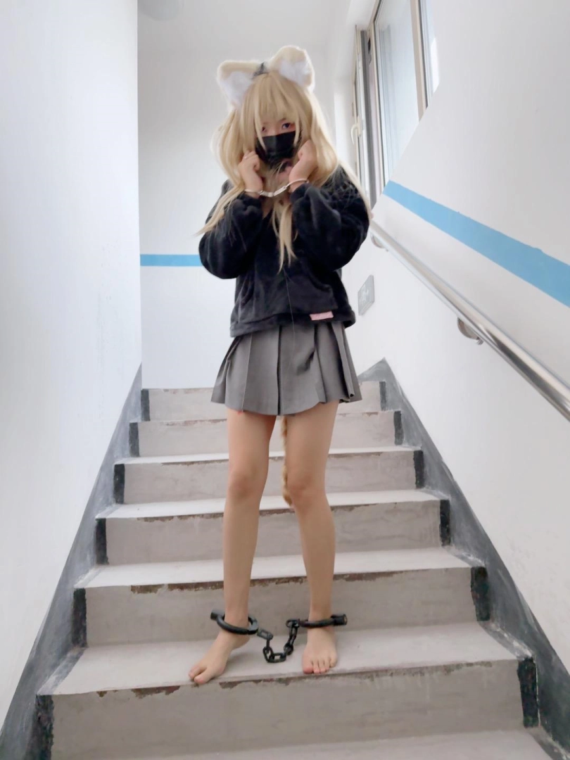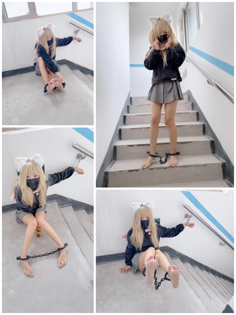 【咕咕精】猫娘黄豆粉の镣铐管理计划-楼梯间赤脚带镣脱出挑战!附近一直有人超紧张!