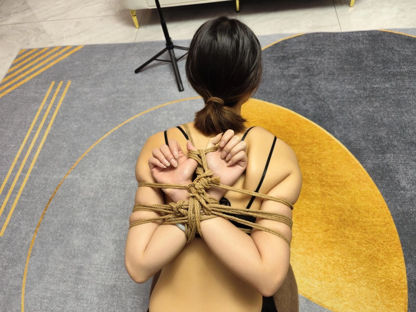 晓倩里面穿上黑色内衣吊带丝袜,外面穿职业装,绑好跪在房间等候,今天等待晓倩的具体是啥样子的体验内容呢?