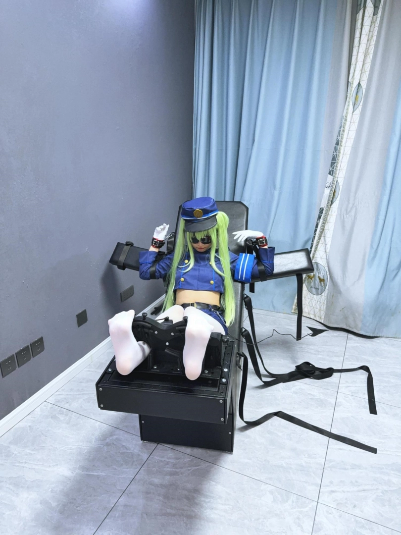 妹子当场就痒的口水乱飞,仰头摇头拼命扭动挣扎,一只手都挣脱出来了~但我还是拽着妹子的手腕接着挠,然后把手铐固定回刑床上~