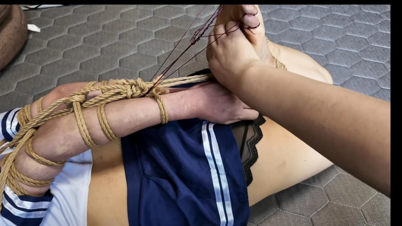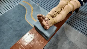 小遥老虎凳虐足,女学生徒步走在小树林,被歹徒袭击掠走,在废弃的房子里面捆绑,十个脚趾用鱼线紧紧的绑起来,反向连接到腿部绳子上,一动不动,老虎凳用树枝,数据线狠狠的抽打,打的小遥一直在哭喊,脚,腿都被数据线抽打出一条条血印