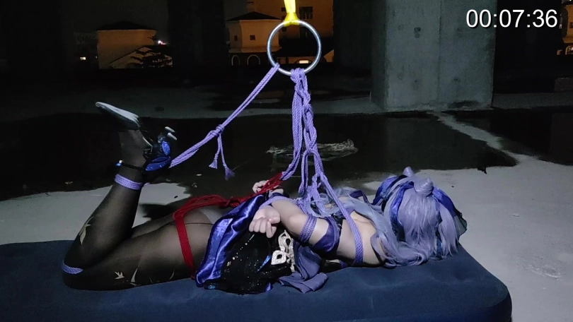 记录了刻晴从被吊着到地上的全过程。哪怕放下来一半。全放下来,依旧逃脱不能。只能苦苦无力挣扎
