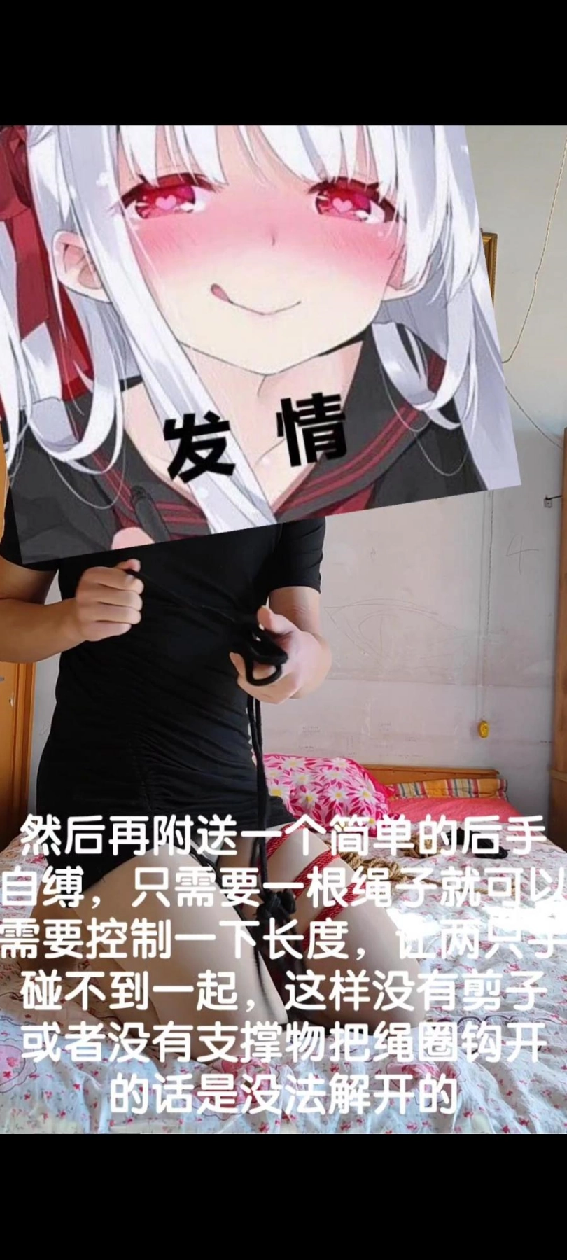 最后一种则是简单而有效的自缚,束缚感不强但是非常有效,操作也很简单,分享缺少束缚资源的同学玩乐用啦!