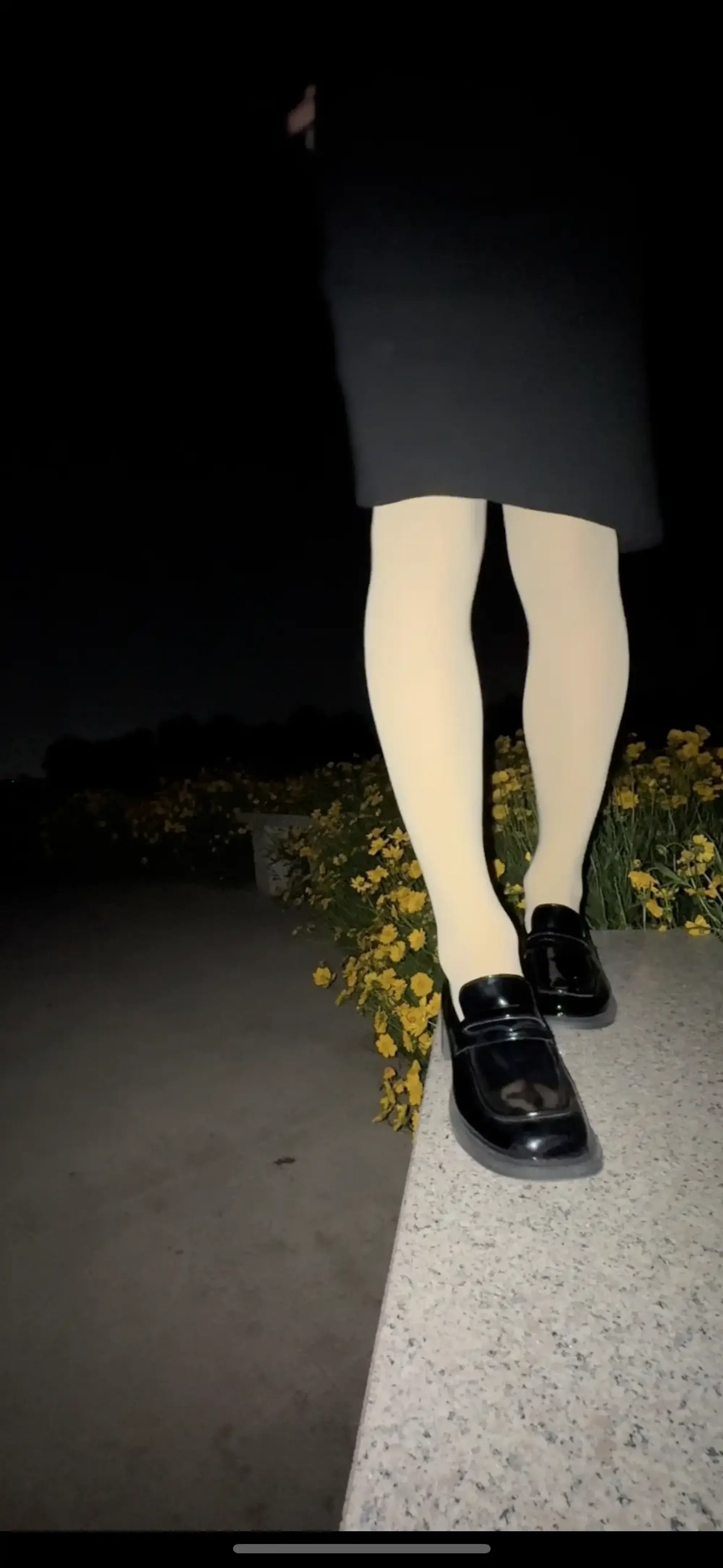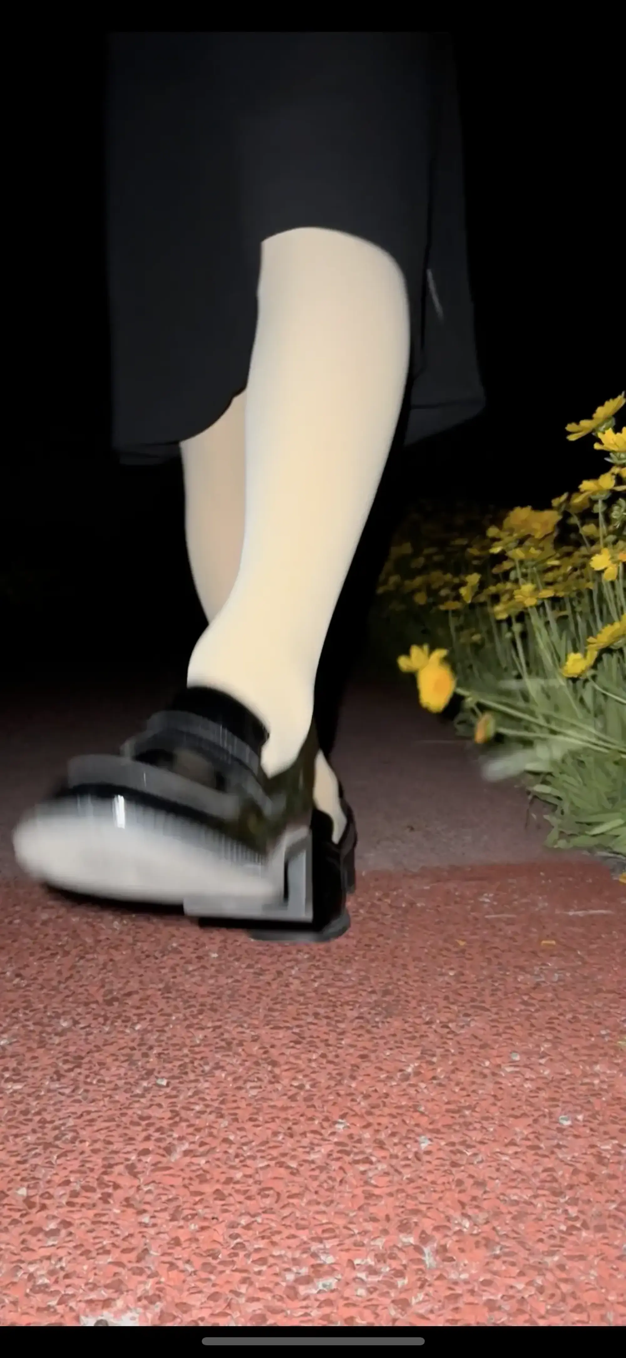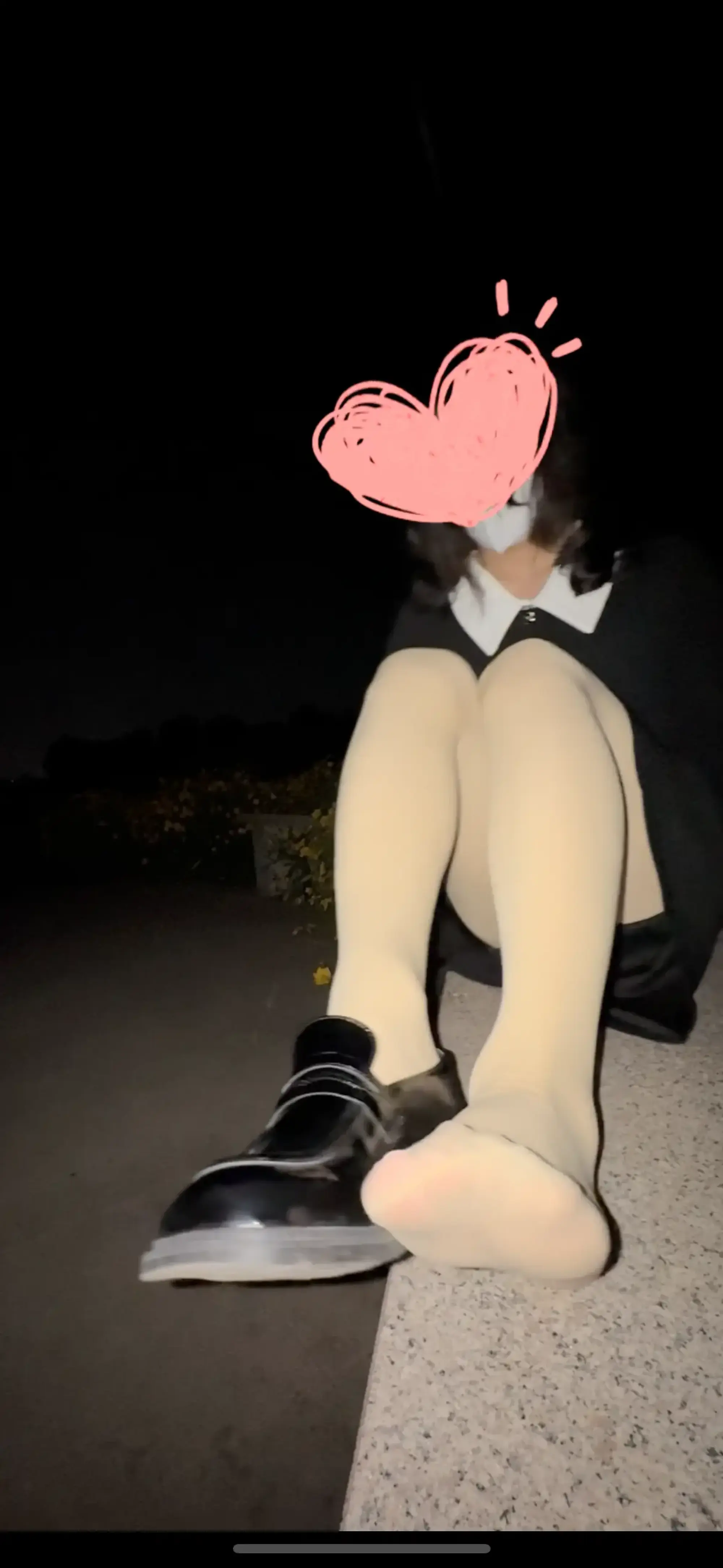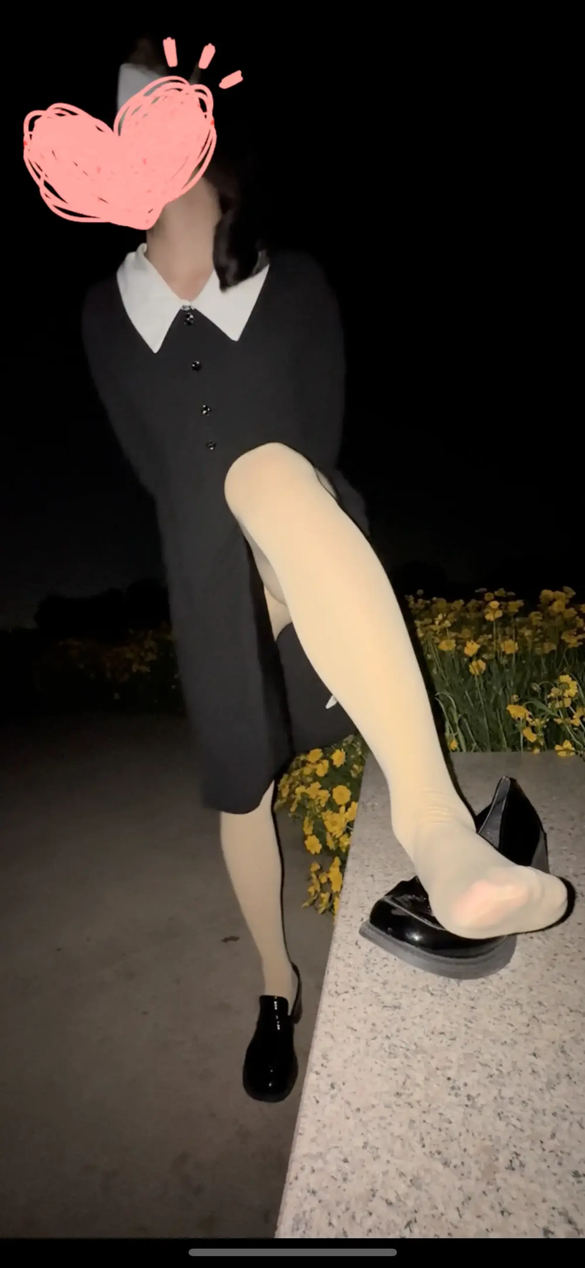 找了个小公园,穿了连衣裙加厚肉丝袜,脚上穿的一双中跟小皮鞋(有点挤脚owo)