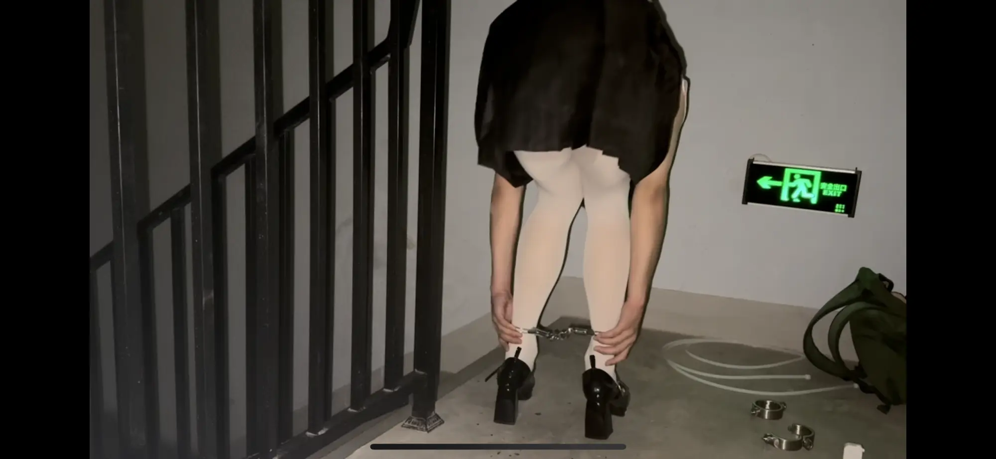 【柚里】绝望无退路楼道手脚铐定时锁自缚,扎带禁锢,后塞➕白丝袜JK 高跟鞋(伪娘~)