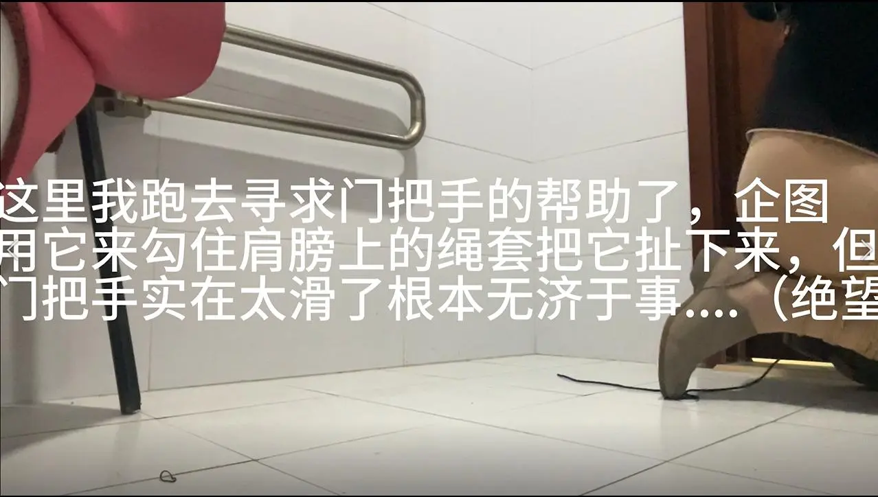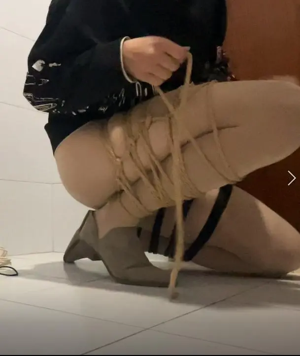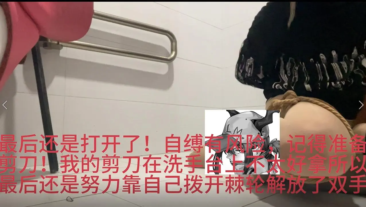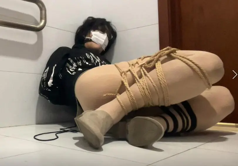 第一次在学校的厕所自缚,讲真的感觉不是一般的刺激,一有脚步声就害怕是来检查的保安大爷什么的......整个人都提心吊胆的。自缚手法就是一个简单的棘轮后手吊缚,加两个憨憨折腿缚,口罩里面有个口球,属于戴上就吐不出来的中间有根金属棍的那种,口水真的止不住地流出aaaaaaa