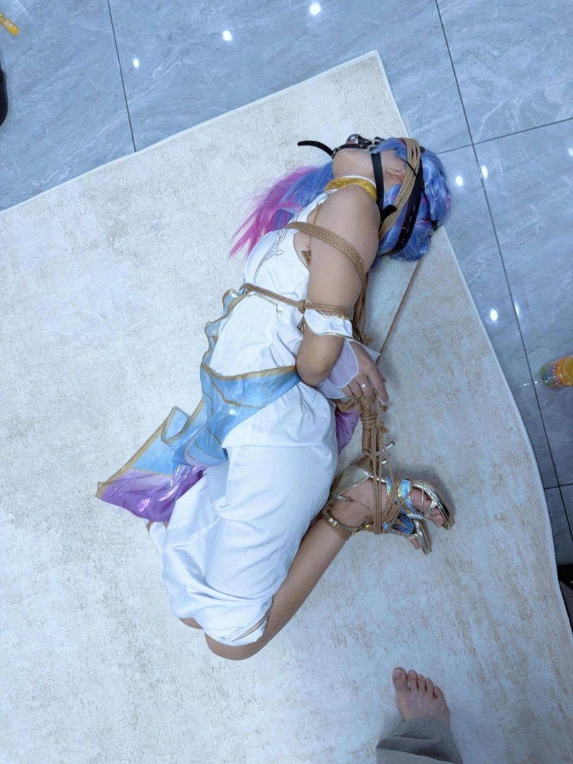 这次真的狼狈惨了,绑到几乎想吐,哭的鼻涕都糊在脸上,超级狼狈,前后对比超级反差——刚cos好的时候超级惊艳可爱,被折磨哭哭后眼泪鼻涕都流在脸上,口水也拉丝,狼狈的不像话。