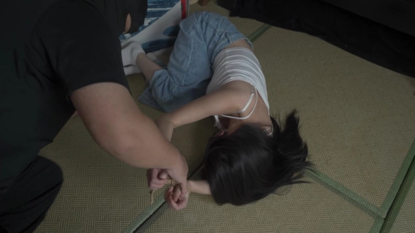 穿着牛仔裤的邻家小姐嗷嗷被跟踪者午夜抓回到房间中玩弄的蜷缩抽搐,
