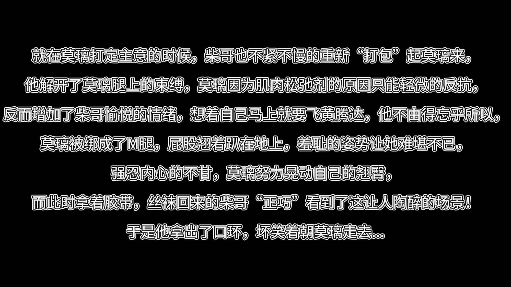 莫璃被绑成了M腿,屁股翘着趴在地上,羞耻的姿势让她难堪不已,