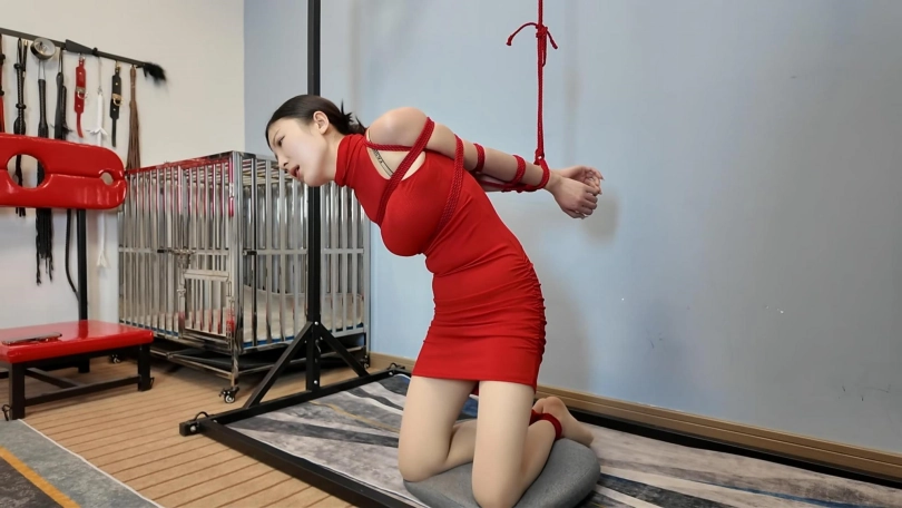 佳佳柔韧性越来越好了,直臂也是并的越来越紧,红衣配红绳完美