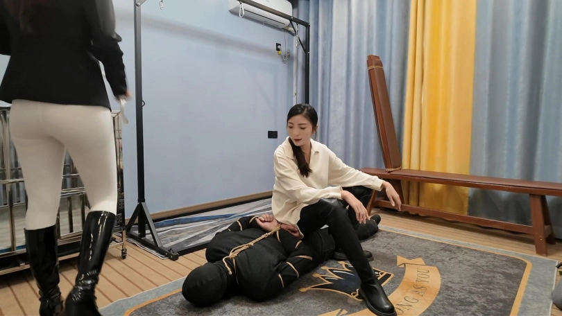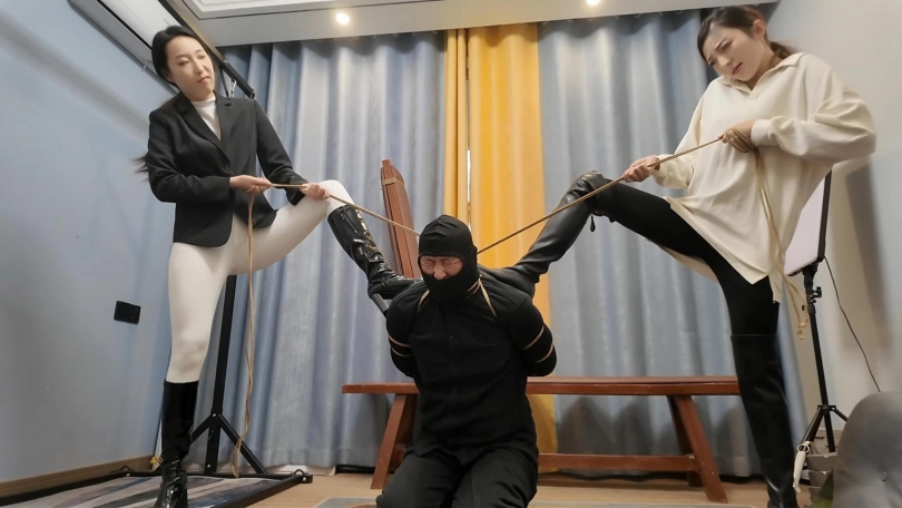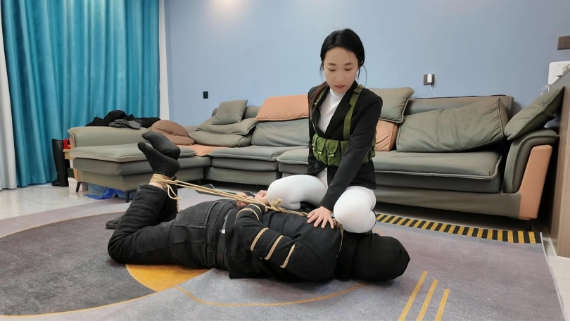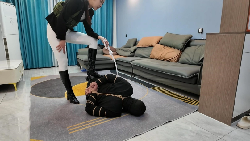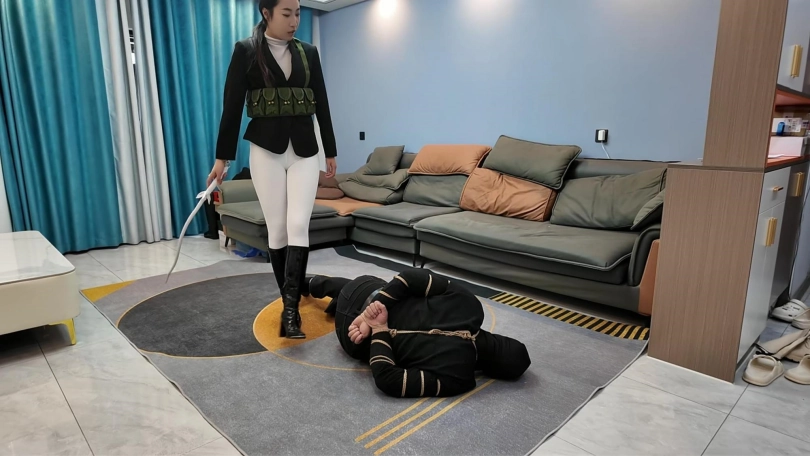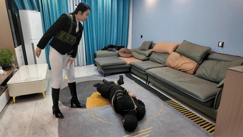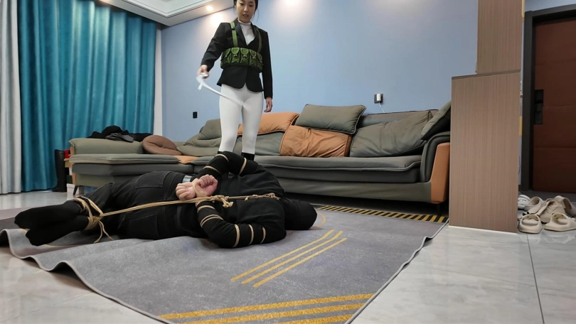 小韩回到家发现不对劲,没想到家里潜入一名小偷,练过功夫的小韩三下五除二就把小偷制服,经过审讯,小偷交代了很多之前做过的坏事,这个时候姐姐回来了,于是姐妹两个一起继续收拾这个无恶不作的小偷,耳光,踩踏,双鞭打,最后用绳子处以勒刑