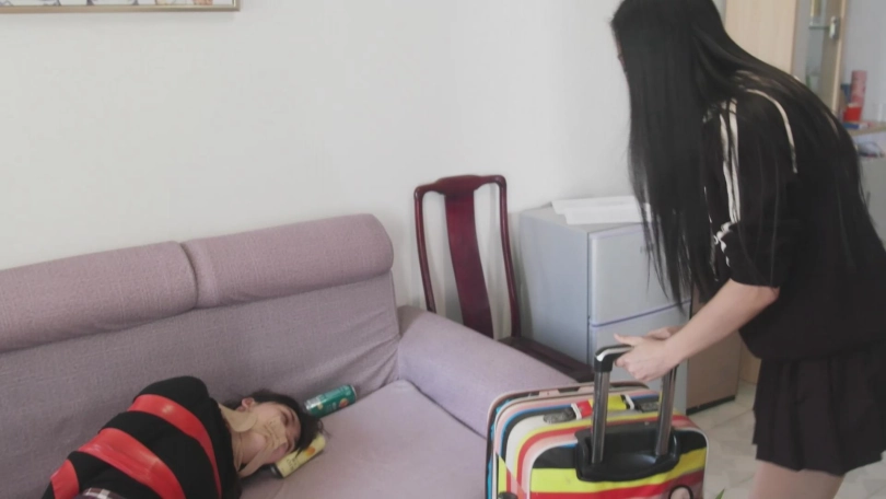 文莉以为冬冬死了,便找来一个大旅行箱,把冬冬放进去。然后准备到楼下找一个那种很普遍的黑出租。