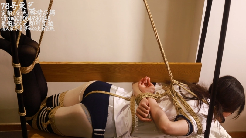 【78号束艺】长腿妹子晓雅身着体操服被驷马绑在板凳上无情鞭打TK