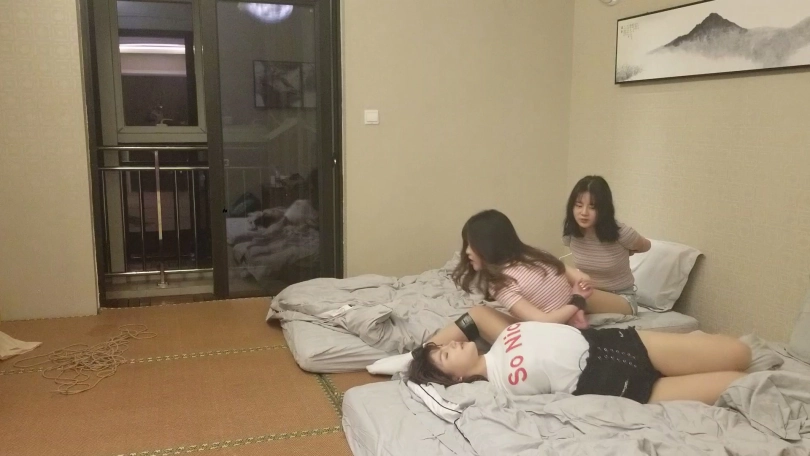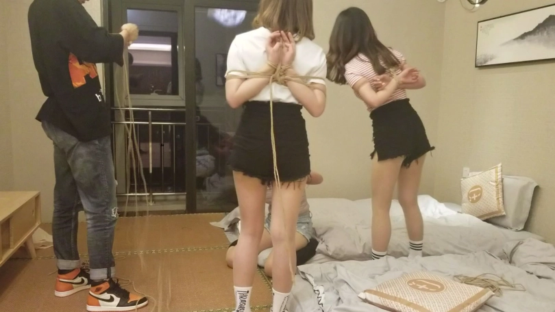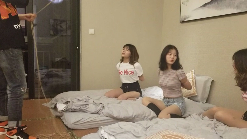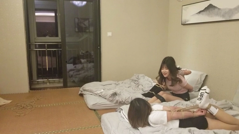 约一个妹子,带来两个闺蜜。实在没啥好拍的,体验了一下捆绑之后。就玩了一个逃脱游戏,第一次被捆绑的妹子怎么样逃脱。有兴趣可以支持一下哦。比较惊喜的发现有一个妹子非常适合做生意模特,对绳艺很感兴趣,柔韧性,耐绑性也非常的绑,下次想单独约一下,大家可以猜猜是哪一个。