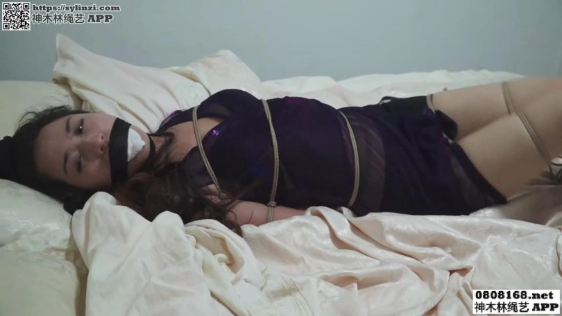 【逍遥】作品《下半夜惊魂》美女李雪被歹徒入室抢劫,捆绑,蒙眼堵嘴,包头,皮具束缚。
