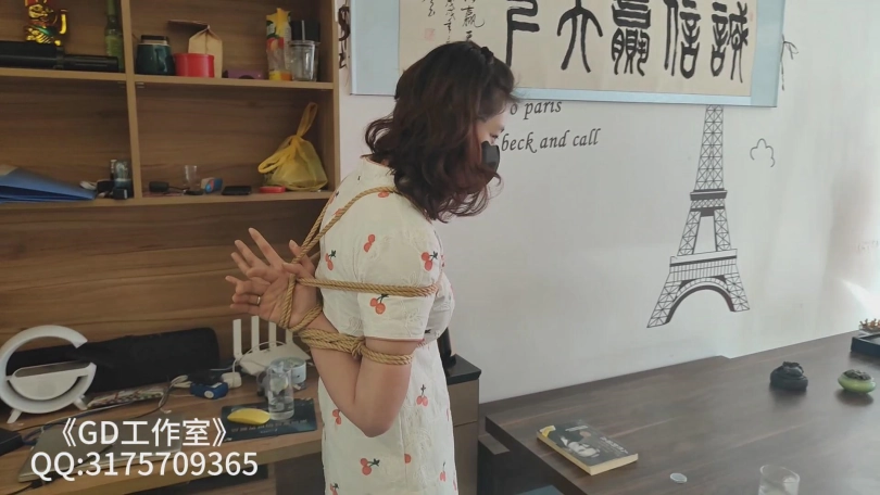 【GD】女大在校学生 穿旗袍 腿很白 后手捆绑 自己去开门 柔韧度不错